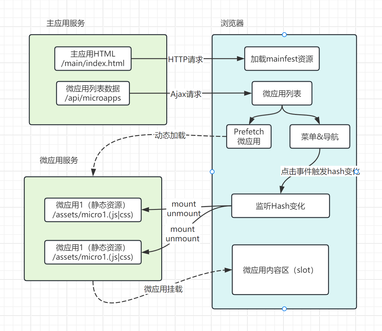 动态Script提供了一种主应用线上动态管理的微应用能力。设计思路围绕将导航和需要加载的微应用进行动态化。设计思路如下图所示: